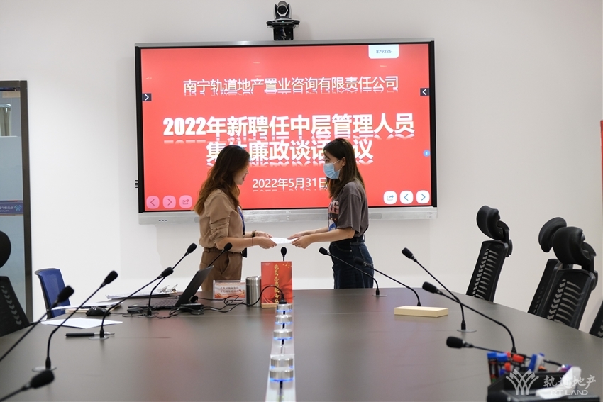 為進(jìn)一步增強(qiáng)廉潔從業(yè)意識(shí),筑牢拒腐防變思想防線(xiàn)。531日下午,軌道地產(chǎn)咨詢(xún)公司黨支部書(shū)記、董事長(zhǎng)、總經(jīng)理()劉燕同志組織軌道地產(chǎn)咨詢(xún)公司2022年新聘任的四名中層領(lǐng)導(dǎo)干部召開(kāi)集體廉政談話(huà)會(huì)議,會(huì)議由軌道地產(chǎn)咨詢(xún)公司黨支部紀(jì)檢委員李佳潞同志主持。
