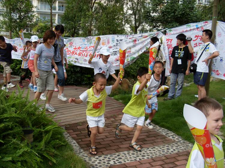來自南寧市區(qū)及周邊六縣的部分學(xué)校展示了各校共21塊奧運畫布,畫布上是各個小學(xué)及幼兒園小朋友對奧運的留言和繪畫。隨后,88名小小火炬手以接力的形式,從翡翠園的觀景平臺出發(fā),環(huán)翡翠園一圈,最后抵達翡翠園的綠化組團翠林晚鐘,完成整個比賽路程。同時,21塊滿載祝福的畫布在中房·翡翠園連接成為一塊長208米的畫布,表達了孩子們對奧運的期待與祝福。